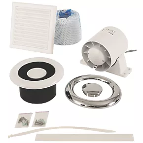 ABS plastic. Optimised impeller design for improved performance . Can be installed above showers or cubicles in the loft or ceiling space, minimising in-room disturbance. Includes all fixings for easy installation.